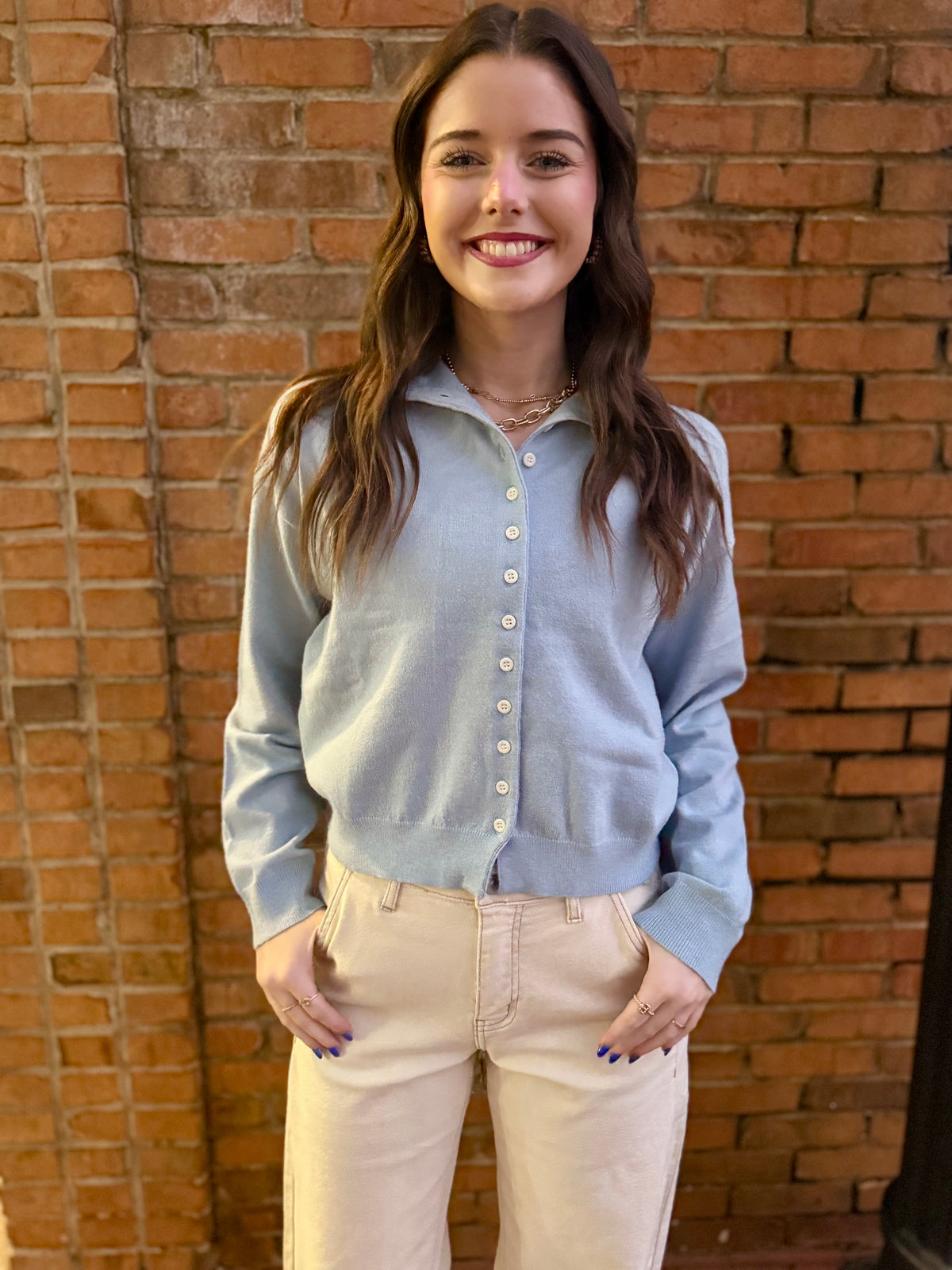 Mallory Powder Blue Button up Cardigan